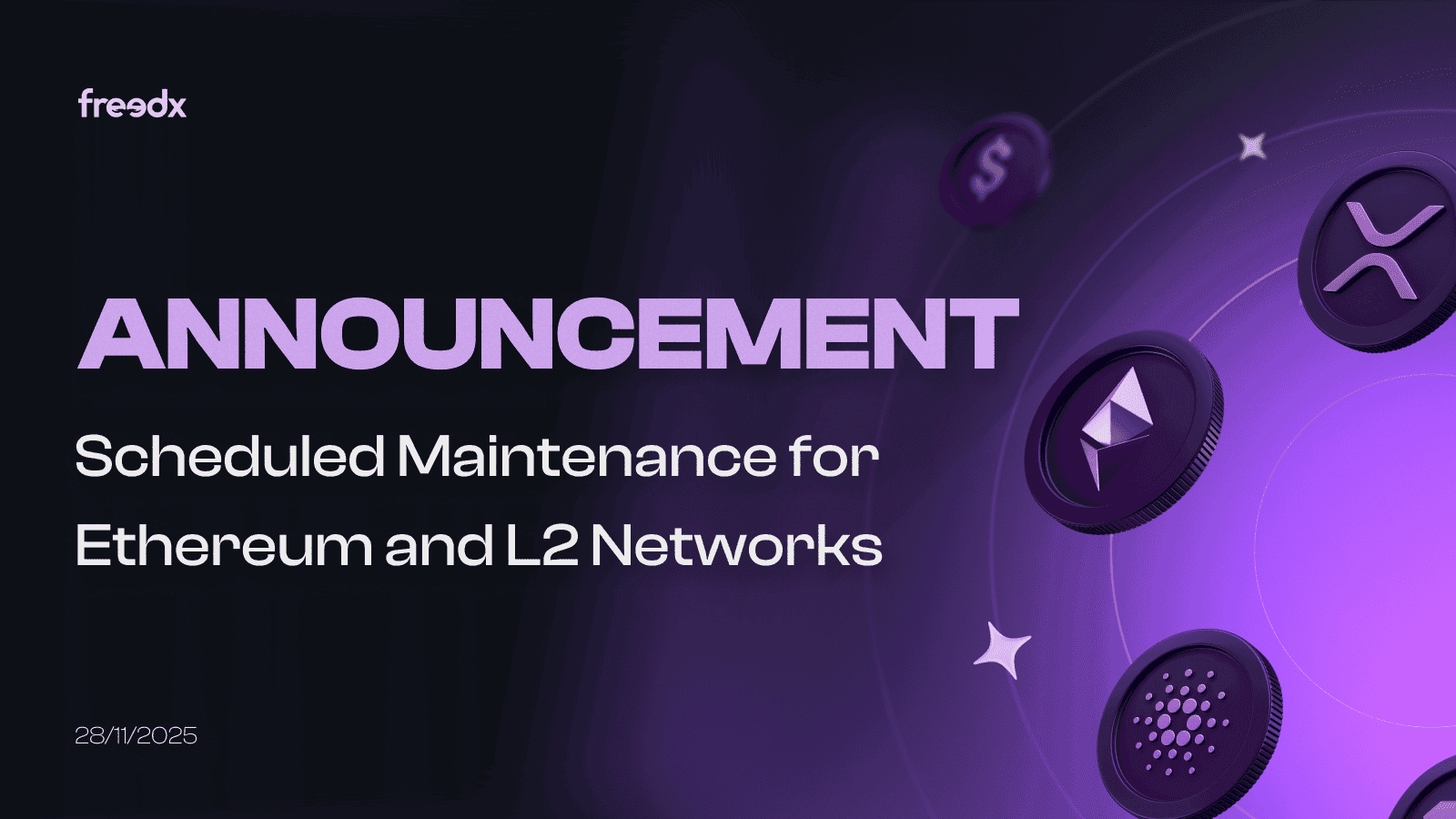 To support the upcoming Fusaka network upgrade, we will be conducting scheduled maintenance on deposits and withdrawals for Ethereum and several Layer-2 networks.