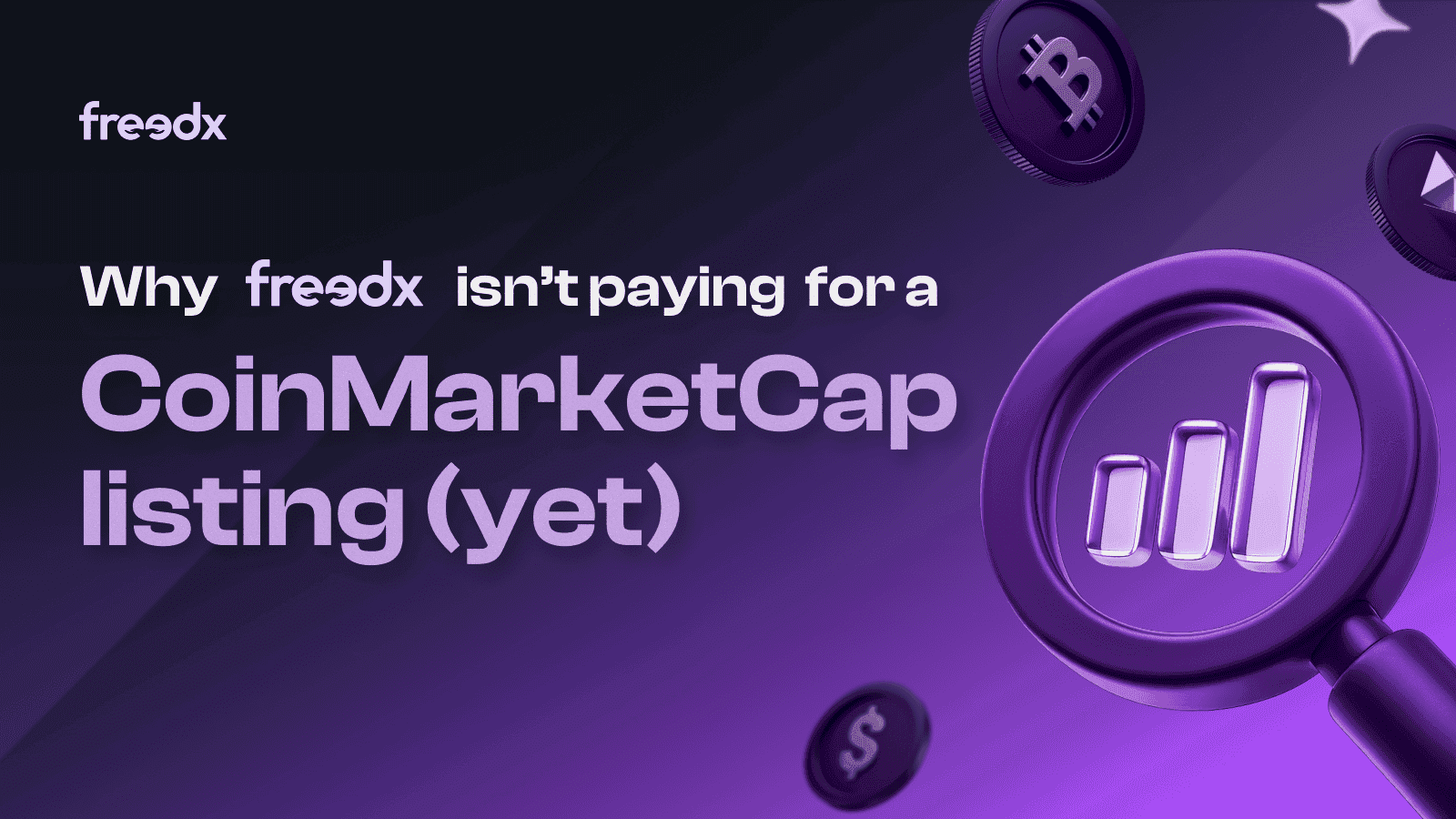 CoinMarketCap will always be an important source of industry visibility, and Freedx will be there in time. But it will not happen because we paid for it, it will happen because our traction and results make it undeniable.
