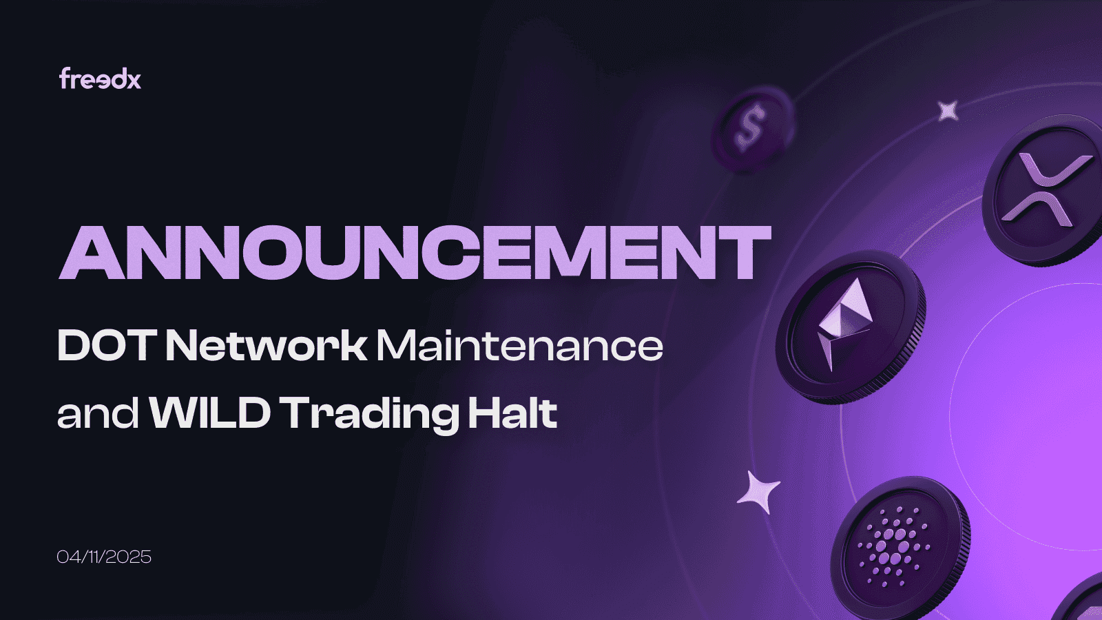 Following Polkadot’s successful upgrade to its new Asset Hub, Freedx will reopen DOT deposits and withdrawals on November 17, 2025, at 5:00 PM (UTC+8).